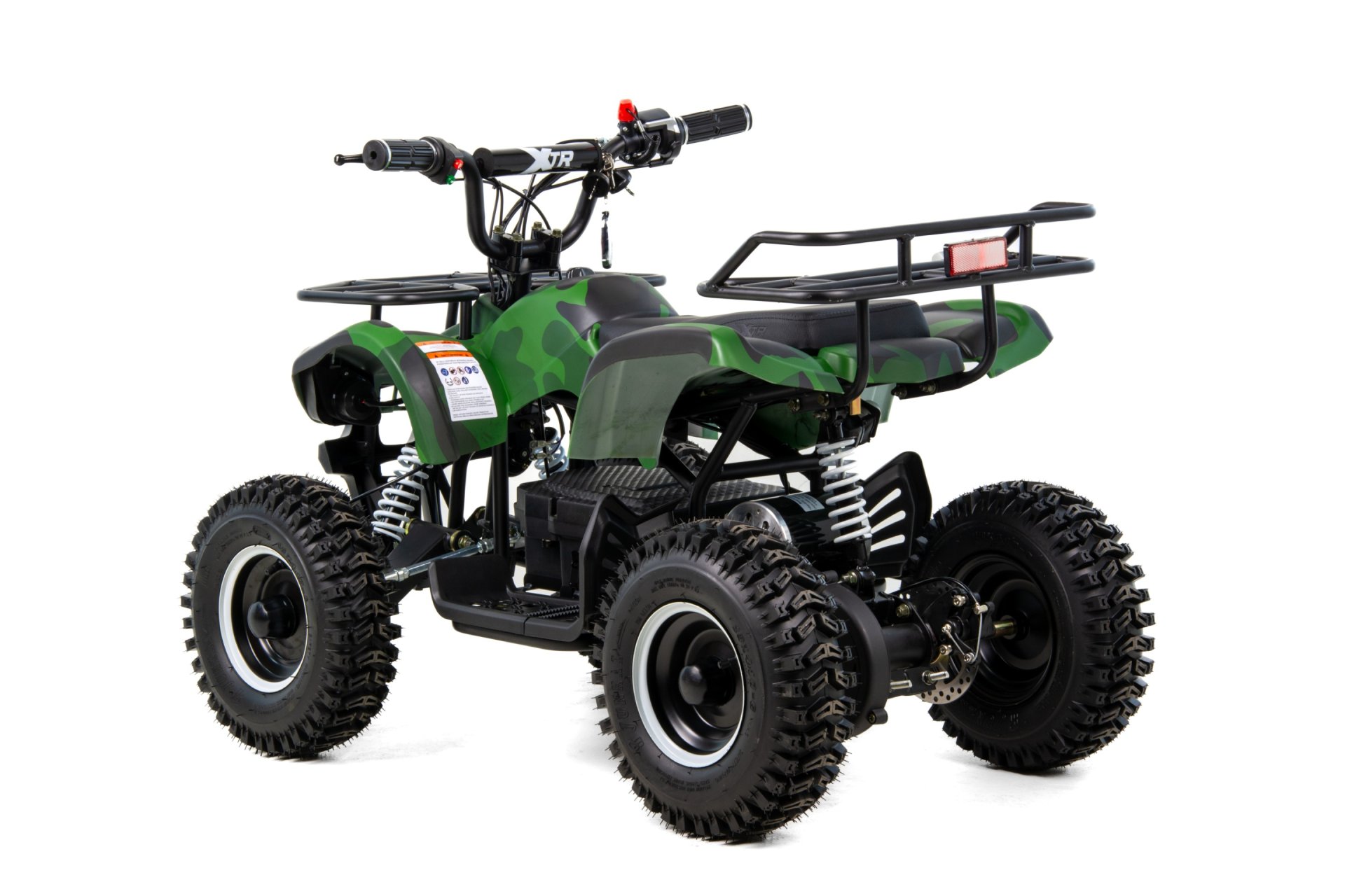 Mini quad elektryczny XTR M7 to pojazd z silnikiem 1000W z możliwością 3-stopniowej regulacji prędkości za pomocą stacyjki. Przeprawowy quad z biegiem wstecznym dla dzieci w wieku 4-8 lat. Zestawiony na dużych 6" kołach, wyposażony w przednie światła LED